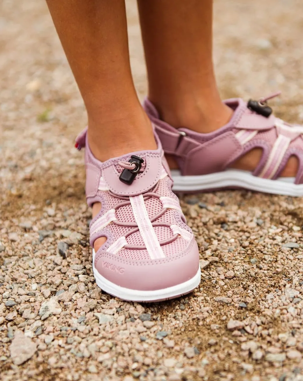 Thrilly er basert på Vikings mest populære sandal, så dette er en sandal for aktive barn. De har overdel av ventilerende tekstil, noe som er helt uunnværlig når man vil være aktiv på varme sommerdager. Tåforsterkning gir ekstra beskyttelse til de små rakse beina. Justerbare borrelås sørger for best mulig passform og komfort. Sandalene har smal lest som er tilpasset jenter, og en slitesterk yttersåle av gummi sikrer godt grep. På varme sommerdager holdes føttene tørre og glade med en myk og behagelig fotseng av semsket skinn som tar seg av fuktigheten. Sandalen kan vaskes på 30 grader, men vi anbefaler ikke tøymykner. Thrilly er den perfekte sandalen for aktiv lek i sommer.